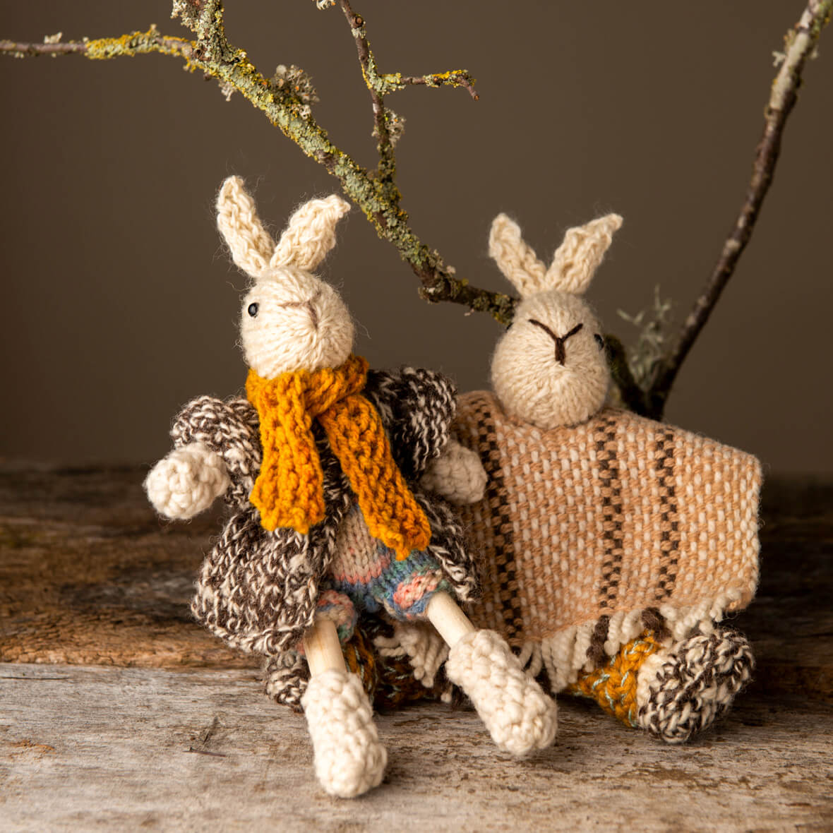Artesanía de Chile en La Unión: Colección de figuras de animales en lana tejida y madera tallada a mano de Kalkona. En la imagen se aprecia la delicadeza del oficio manual y la conexión con la naturaleza del sur chileno. Ideal para decoración con propósito y regalos con alma. Encuéntranos en redes como @KalkonaChile y coordina tu pedido al WhatsApp +56991320953 para envíos a todo el país.Conejito Mediano